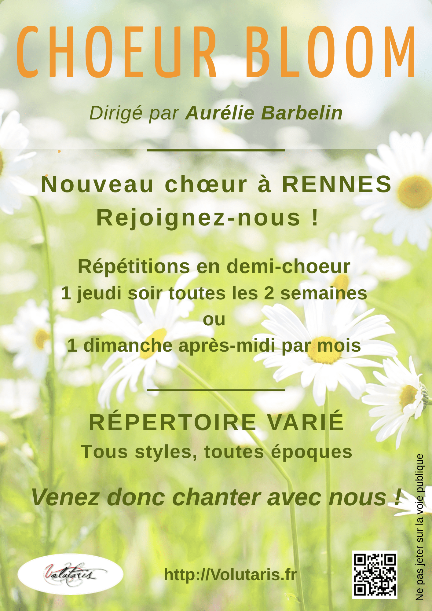 Vous êtes instrumentiste et depuis longtemps vous souhaitez découvrir votre voix ? Vous êtes chanteur soliste et vous souhaitez améliorer votre lecture de partition ? Vous êtes choriste et vous voulez vous perfectionner ou découvrir d’autres répertoires et manières de travailler ? Le chœur Bloom a été créé pour vous ! Venez nous rejoindre et partager vosLire la suite « 2025-09 : Création d’un nouveau chœur, le Chœur Bloom ! »